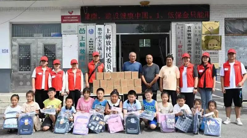 7月9日上午,实践团深入集安市太王镇上解放村。太王镇党委书记高金光、镇长刘志雄与村干部出席“三下乡”社会实践基地挂牌仪式。仪式由学校团委书记刘锐主持。太王镇党委书记高金光讲话。挂牌仪式后,实践团队与本村义务教育帮扶对象进行结对,并捐赠了书包、马克笔等教育关爱帮扶物资。