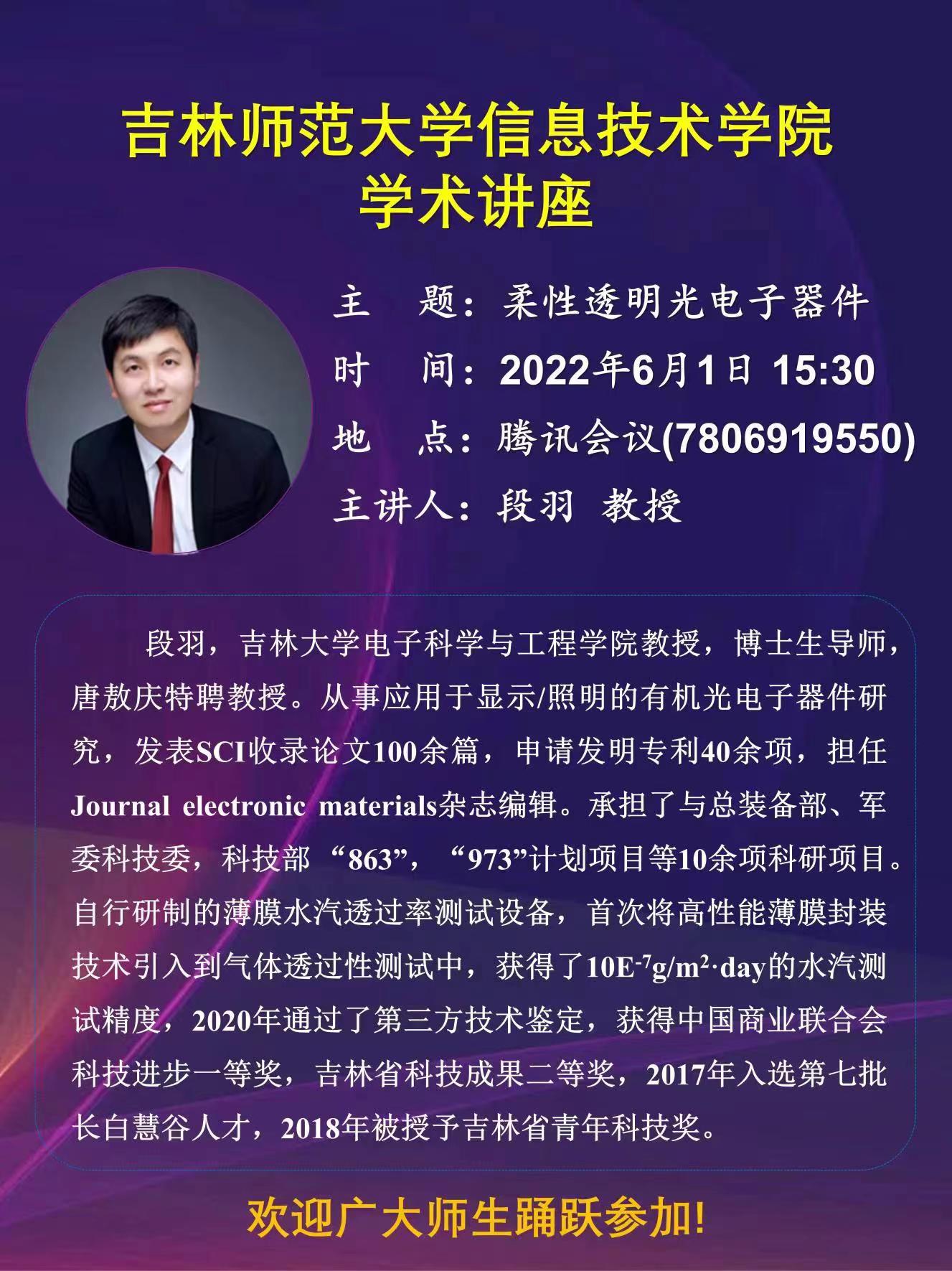 06.01 【学术讲座】柔性透明光电子器件学术讲座通知