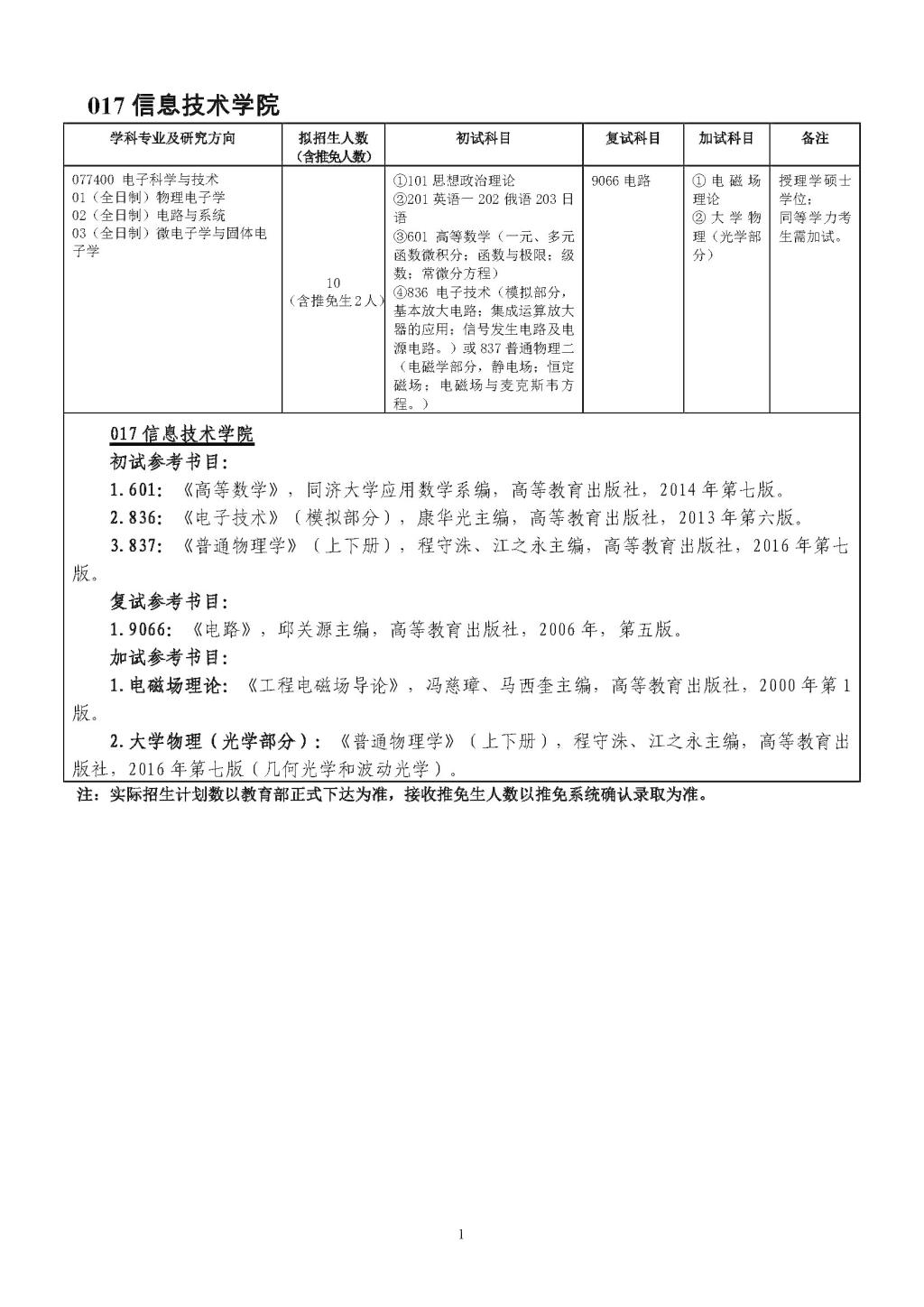 澳门太阳成集团信息技术学院2020年硕士研究生招生专业目录