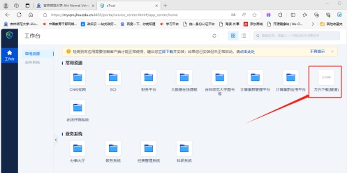 1.登录Web VPN进入工作台后,点击“万方下载(隧道)”图标。