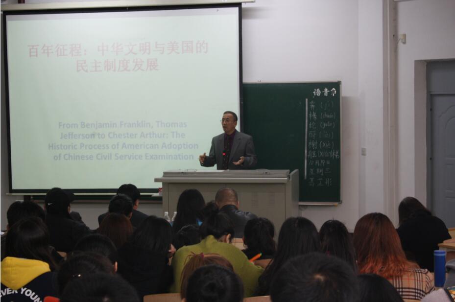 带着对母校发展的关心,带着对母校的感恩之心,王小良博士于2016年10月18日回到母校,在3天的行程中,王小良博士给外国语学院、政法学院师生做了“中华文明与美国民主制度的发展”学术报告,就中华文化对美国建国和民主制度发展的影响,阐发了自己独到的见解,并与外国语学院、政法学院及学校相关部门负责人就“中华文化与世界发展”问题进行了交流。 在校活动期间,校党委书记许才山、校长杨景海、副校长李海波分别与王小良就学校发展、学术交流、学科建设等进行了富有成效的交流,并对校友如何更地发挥在学校发展建设中的重要作用提出了自己的建设性意见。校友办主任兼校友会秘书长张颖全程陪同。