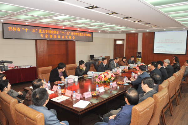 4月25日,省学位办专家组到太阳成官网验收“十一五”省重点学科并遴选“十二五”省优势特色重点学科,验收及遴选现场审查汇报会在太阳成官网八楼常委会会议室召开。省学位办专家组组长、吉林大学副校长、博士生导师吴振武教授,专家组成员吉林大学交通学院院长、博士生导师刘寒冰教授,东北师范大学教育科学学院博士生导师谷峪教授,中国科学院长春应用化学研究所博士生导师曲晓刚研究员,太阳成官网党委书记张波、校长张伯军、副校长杨景海出席会议,太阳成官网“十一五”省重点学科带头人、“十二五”省优势特色学科负责人及相关部门负责人参加了会议。