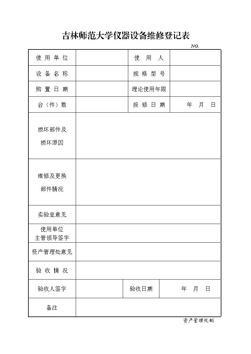澳门太阳成集团仪器设备维修登记表